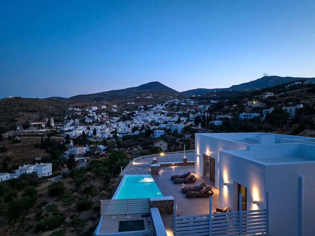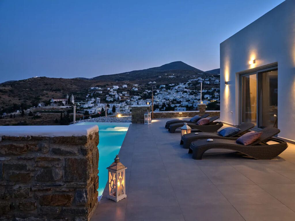 Villa Luxury Magic View marries Cycladic architecture with modern luxury, just steps from the vibrant port. Offering panoramic views, its design ensures a tranquil oasis of light, shadow, and beauty.