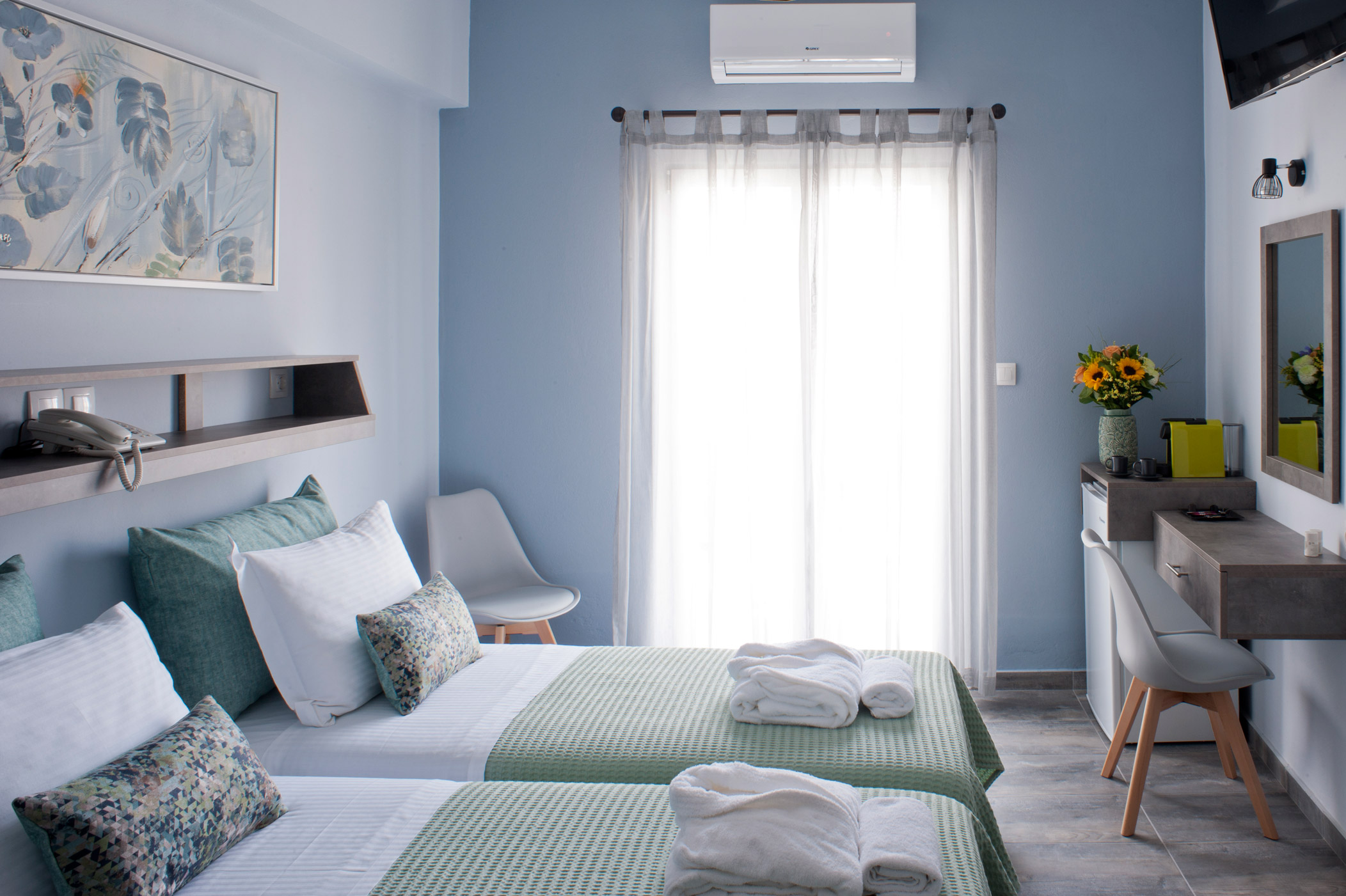 Our reception is at your service for 16 hours daily, from 07:30 AM to 11:30 PM, ready to warmly greet you, facilitate your check-in, and offer expert recommendations on the premier local attractions, events, dining, and nightlife. Everything Naoussa has to offer is just a step away from your doorstep at Liprando.